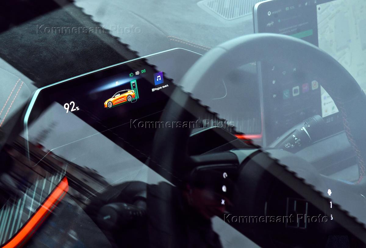 Opening ceremony of the Vyborgsky electric hub (electric vehicle charging station) at 26 Zhukova Street. Genre photography. Car while charging.