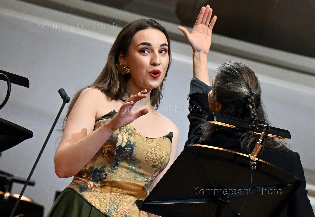 Оратория композитора Йозефа Гайдна "Сотворение мира" в исполнении Государственного академического камерного оркестра России под управлением дирижера Филиппа Чижевского в Концертном зале имени П.И.Чайковского. Оперная певица Елена Гвритишвили (слева) и дирижер Филипп Чижевский (справа) во время концерта.
