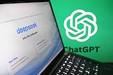 Жанровая фотография. Логотип китайской нейросети Deepseek на экране компьютера и смартфона.
