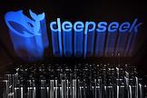 Жанровая фотография. Логотип китайской нейросети Deepseek на экране компьютера.