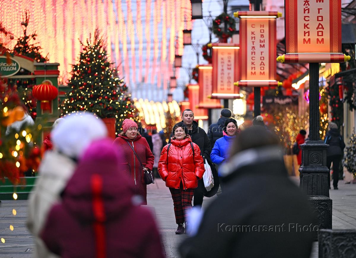 Views of Moscow. Genre photography. Festive decorations of the city as part of the Chinese New Year festival in Moscow.