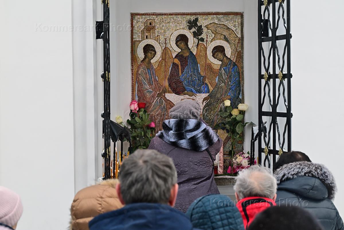 День памяти святой блаженной Ксении Петербургской на Смоленском кладбище. Верующие у Троцкой часовни.