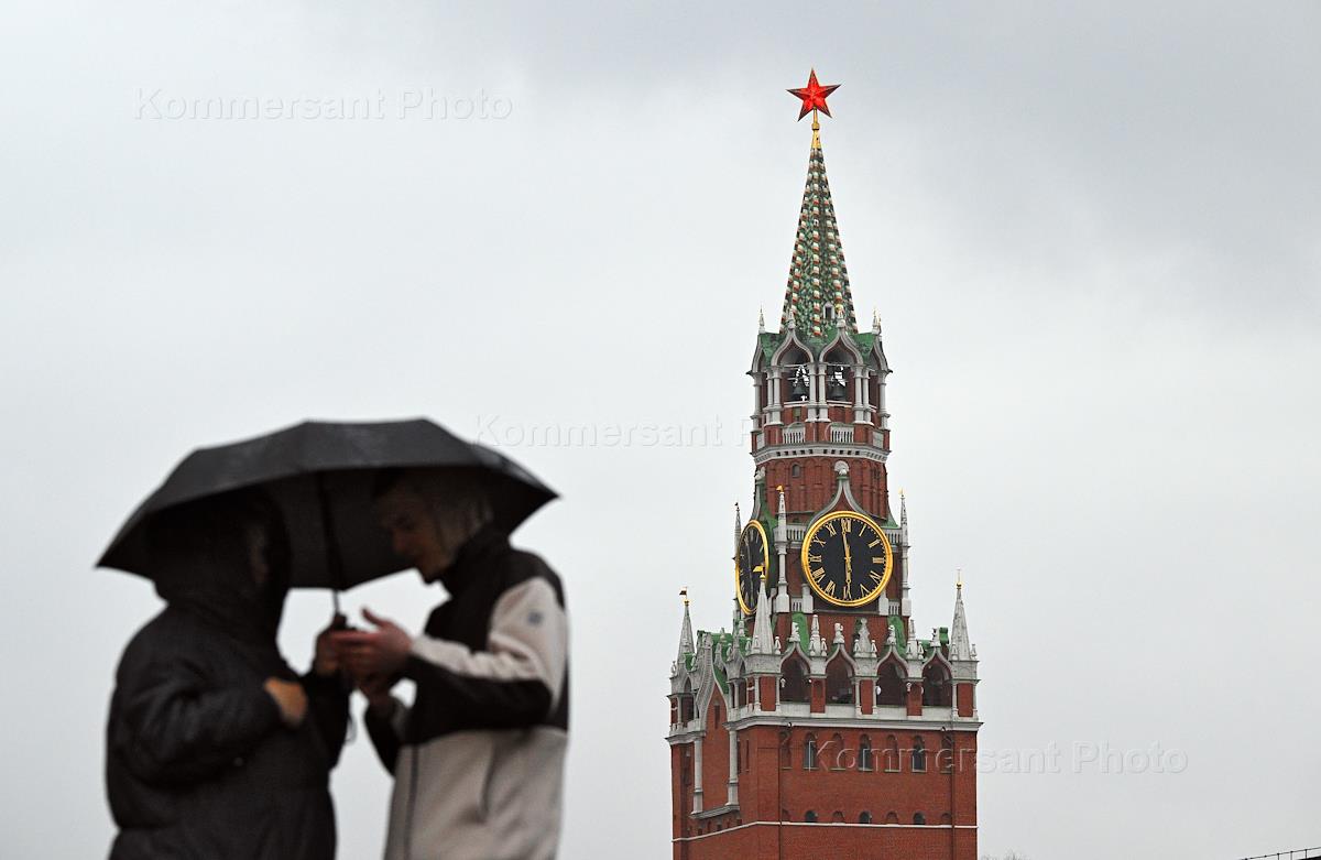 Виды Москвы. Жанровая фотография. Двое под зонтом на Красной площади.