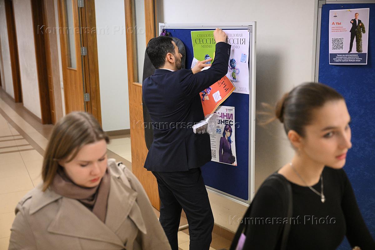 МГИМО (Университет) МИД России. Жанровая фотография. Студенты у доски объявлений.