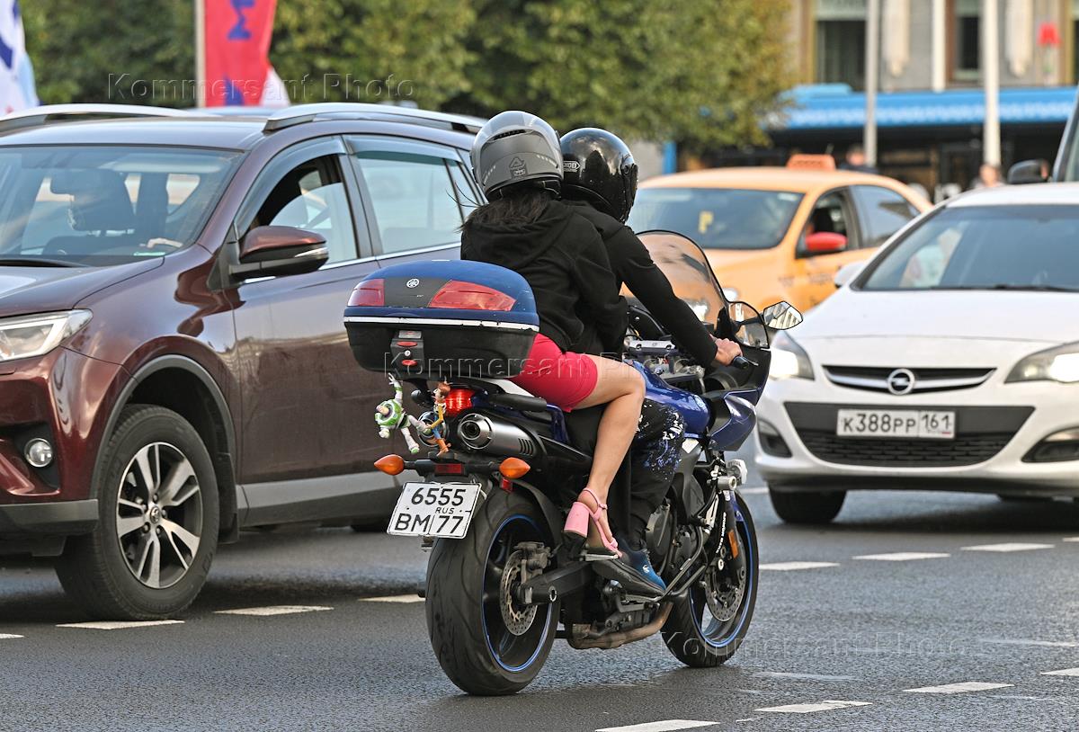 Жанровая фотография. Девушка с парнем едут на мотоцикле.