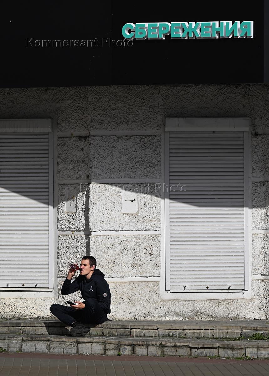Виды Москвы. Жанровая фотография. Жара в городе. Мужчина ест мороженное.