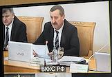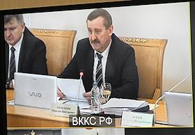 Рассмотрение представления председателя Следственного комитета России о даче согласия на возбуждение уголовного дела в отношении судьи Назрановского районного суда Республики Ингушетия Алика Ярыжева по признакам преступлений, предусмотренных частью 1 статьи 305 Уголовного кодекса РФ, в Высшей квалификационной коллегии судей (ВККС). Председатель ВККС России Николай Тимошин во время заседания коллегии.