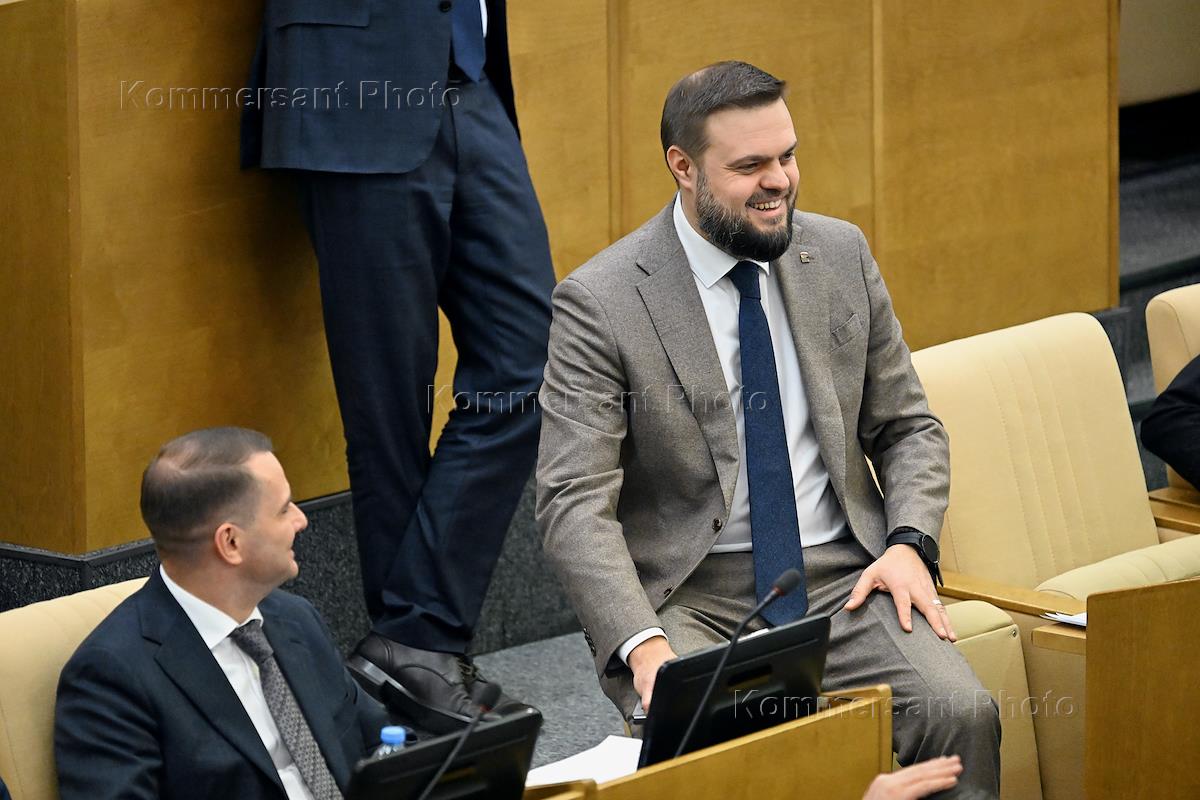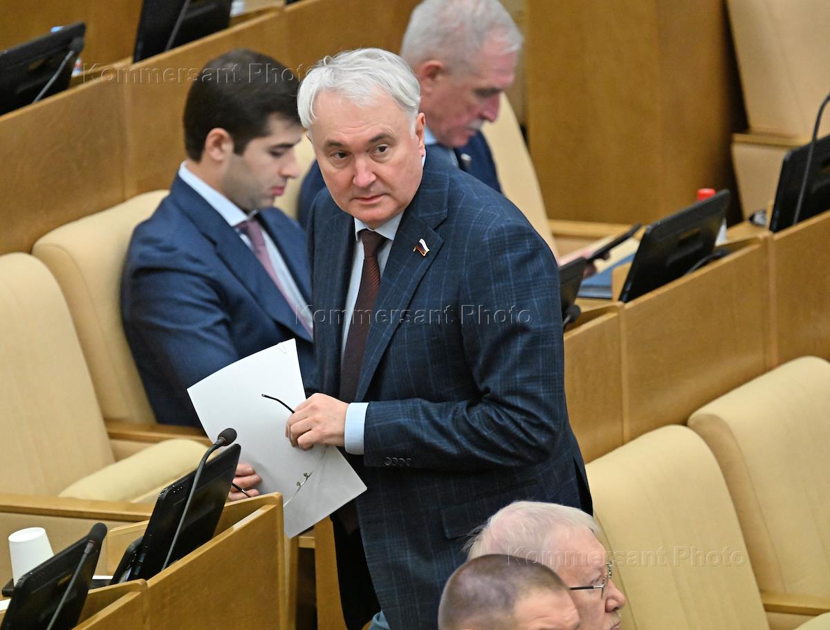 Пленарное заседание Государственной думы (ГД) России. Член комитета ГД России по транспорту и развитию транспортной инфраструктуры Андрей Колесник (в центре) во время заседания.