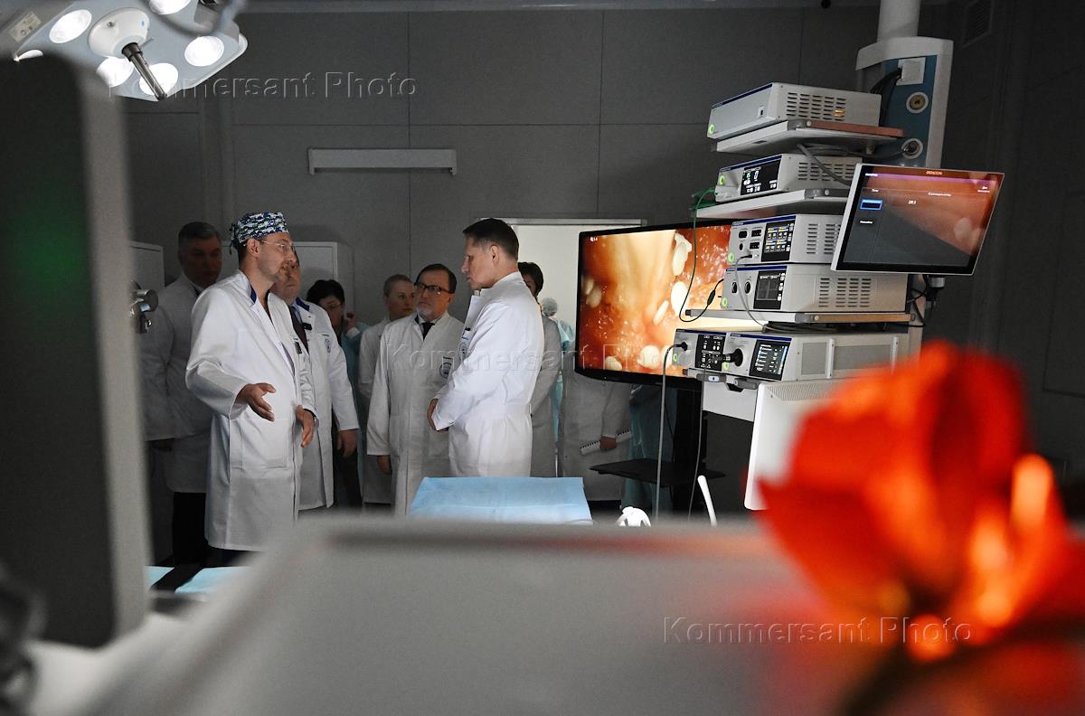 Работа Сеченовского центра материнства и детства, открытого после масштабной модернизации. Жанровая фотография. Сотрудники центра в операционной.