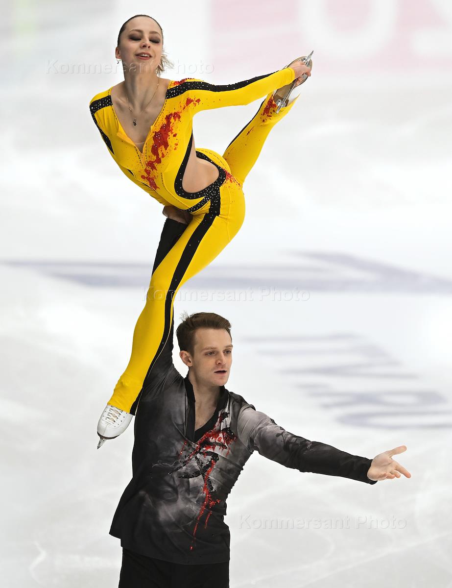 Финал Кубка России "Гран При России" по фигурному катанию на коньках в ЛД "Кристалл Арена". Спортивные пары, короткая программа. Фигуристы Ясмина Кадырова и Илья Миронов во время соревнований.