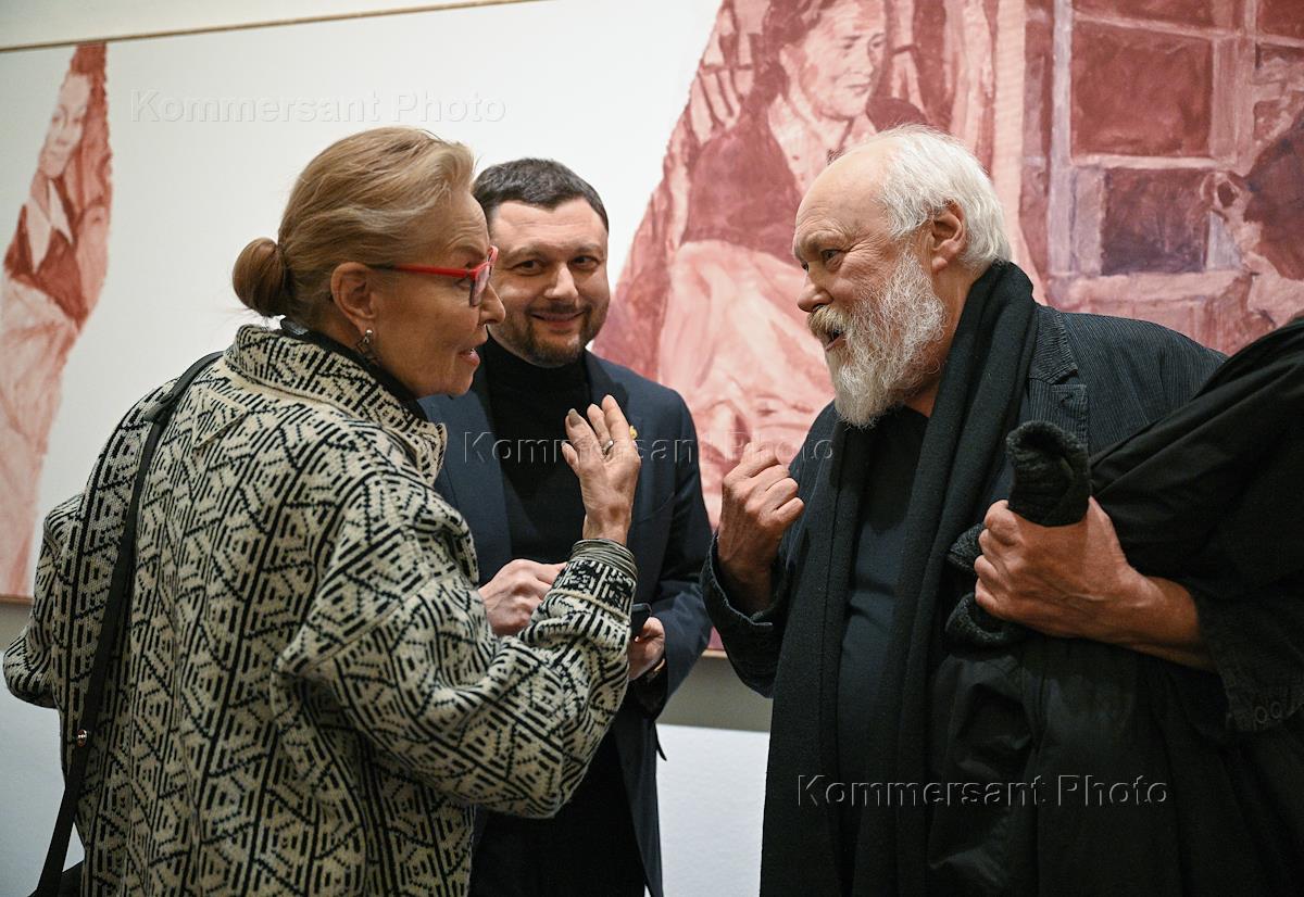 Церемония открытия выставки "Это лучшее, что у нас есть". Выбор The Art Newspaper Russia" в Московском музее современного искусства (MMOMA). Слева направо: директор Мультимедиа Арт Музея Ольга Свиблова, исполнительный директор Московского музея современного искусства (ММСИ) Василий Церетели и художник Николай Полисский на церемонии.