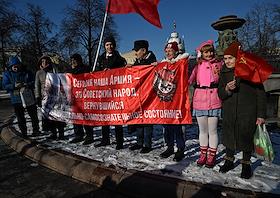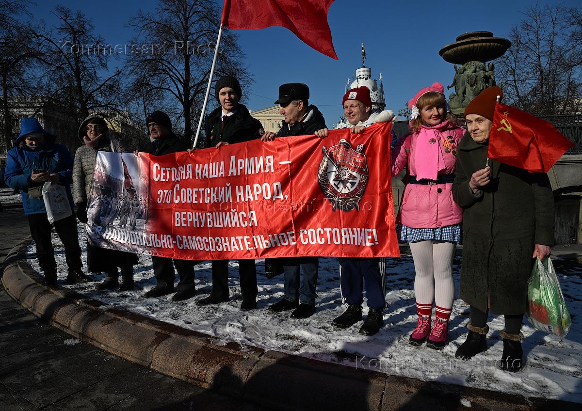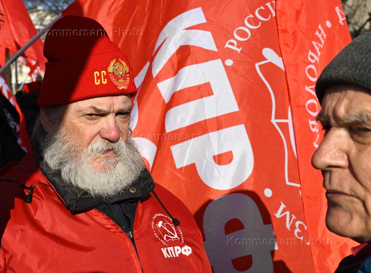 День защитника Отечества. Встреча депутатов КПРФ с избирателями в сквере Театральной площади. Жанровая фотография. Сторонники КПРФ перед началом встречи.