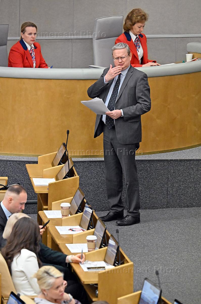 Пленарное заседание Государственной думы (ГД) России. Председатель комитета ГД России по науке и высшему образованию Сергей Кабышев во время заседания.