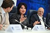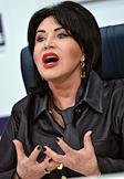 Пресс-конференция, посвященная премьерам к 80-летию Великой Победы, анонсированию новых проектов театра "Русская песня" и подготовке к юбилею народной артистки России Надежды Бабкиной, в пресс-центре ТАСС. Художественный руководитель Московского государственного музыкального театра фольклора "Русская песня" Надежда Бабкина во время пресс-конференции.