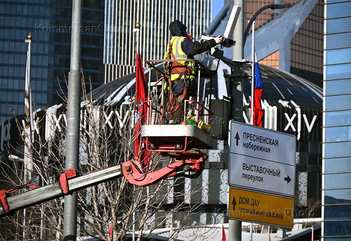 Жанровая фотография. Работы по обслуживанию и ремонту дорожных камер фотофиксации нарушений дорожного движения. Камера фотофиксации на Пресненской набережной.