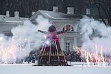 Празднование Широкой Масленицы в ЦПКиО имени Кирова. Жанровая фотография. Сжигание чучела Масленицы.