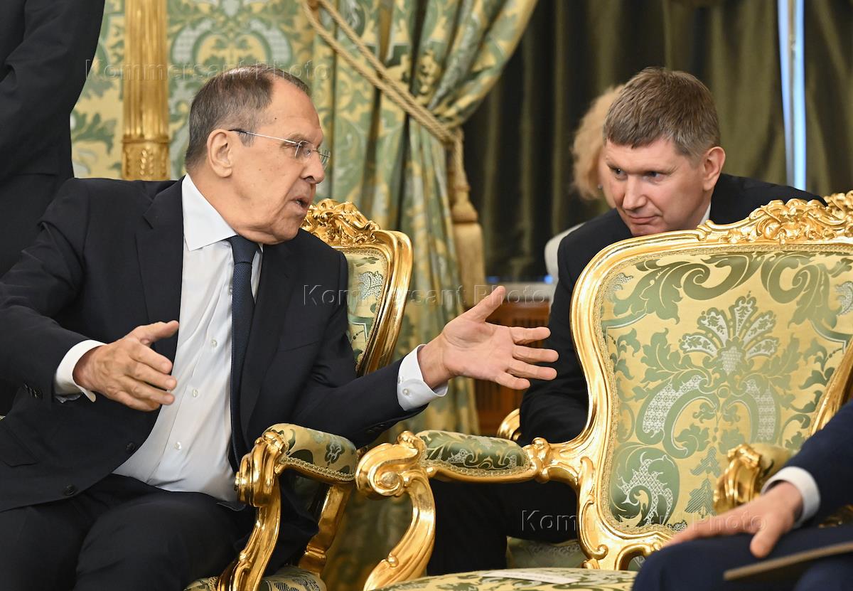 Переговоры президента России Владимира Путина с председателем Государственного административного совета, премьер-министром Мьянмы Мин Аун Хлайном, находящимся в России с официальным визитом. Министр иностранных дел России Сергей Лавров перед началом переговоров в зеленой гостиной Большого Кремлевского дворца.