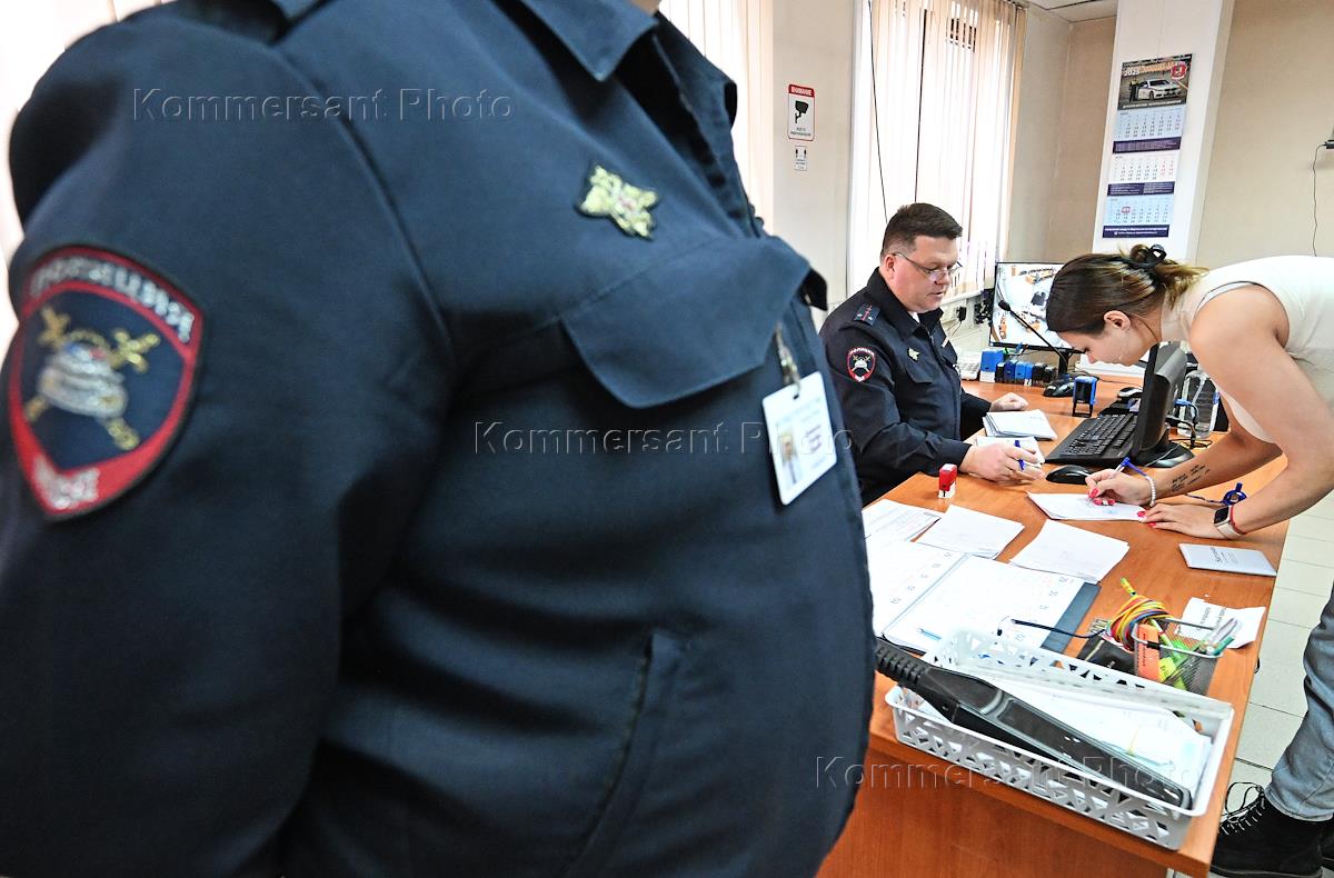 Межрайонный регистрационно-экзаменационный отдел Государственной инспекции безопасности дорожного движения (ГИБДД) (МРЭО) на улице Твардовского. Процедура регистрации автомобиля сотрудниками МРЭО.