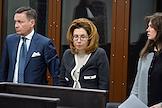Рассмотрение ходатайства следствия об изменении меры пресечения супруге бывшего мэра Сочи Янине Копайгородской, обвиняемой в крупной растрате, в Мещанском районном суде. Супруга бывшего мэра Сочи Янина Копайгородская (в центре) во время заседания суда.