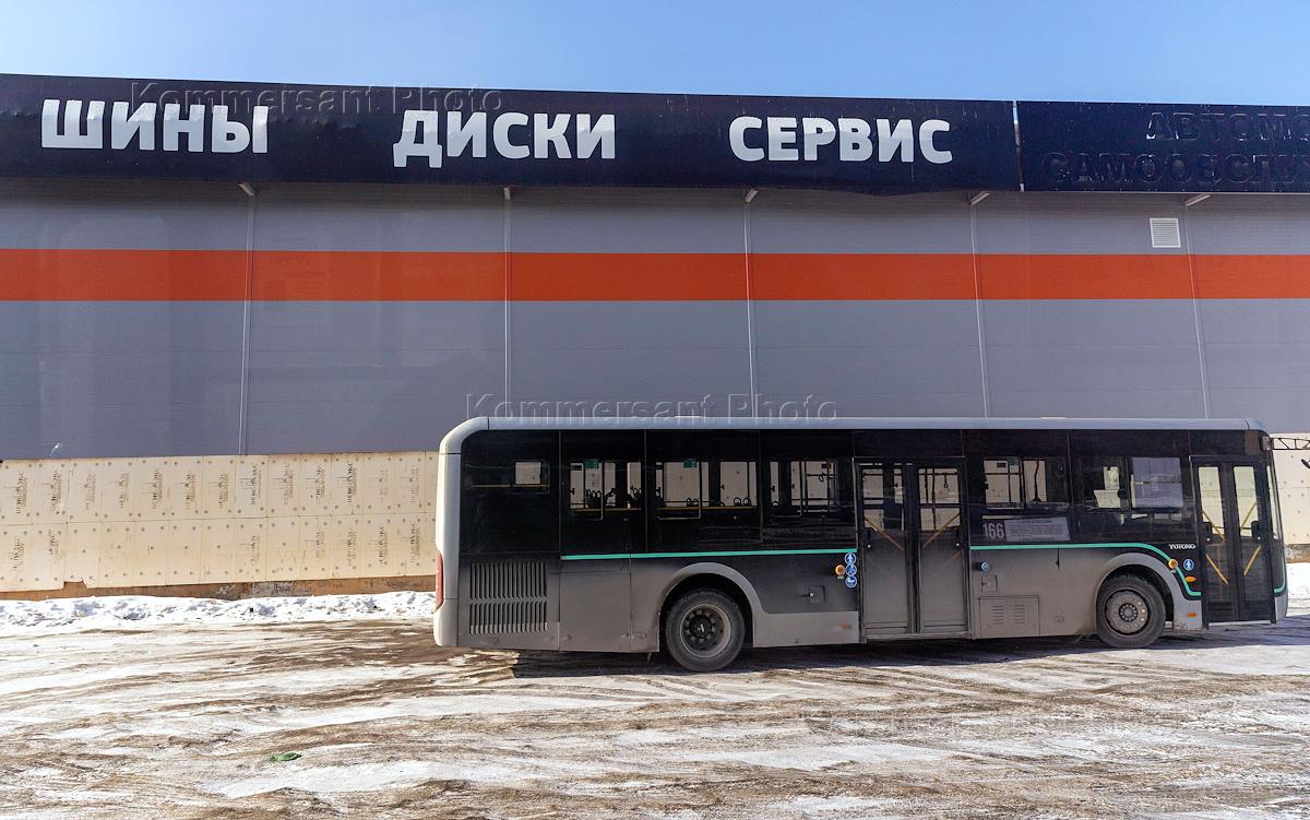 Виды города Березовский. Жанровая фотография. Автобус на фоне здания автосервиса.