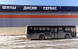 Виды города Березовский. Жанровая фотография. Автобус на фоне здания автосервиса.