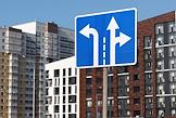 Виды города Березовский. Жанровая фотография. Дорожный знак на фоне новостроек.