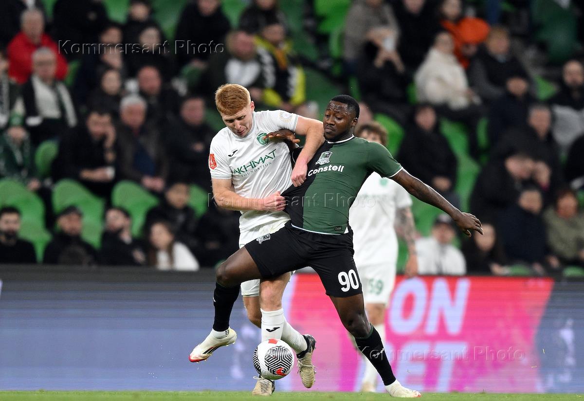 Фонбет - Кубок России по футболу 2024/25. 1/4 финала. Матч между командами "Краснодар" (Краснодар) - "Ахмат" (Грозный) на стадионе "Краснодар". Игрок команды "Краснодар" Мозес Кобнан (слева) во время матча.