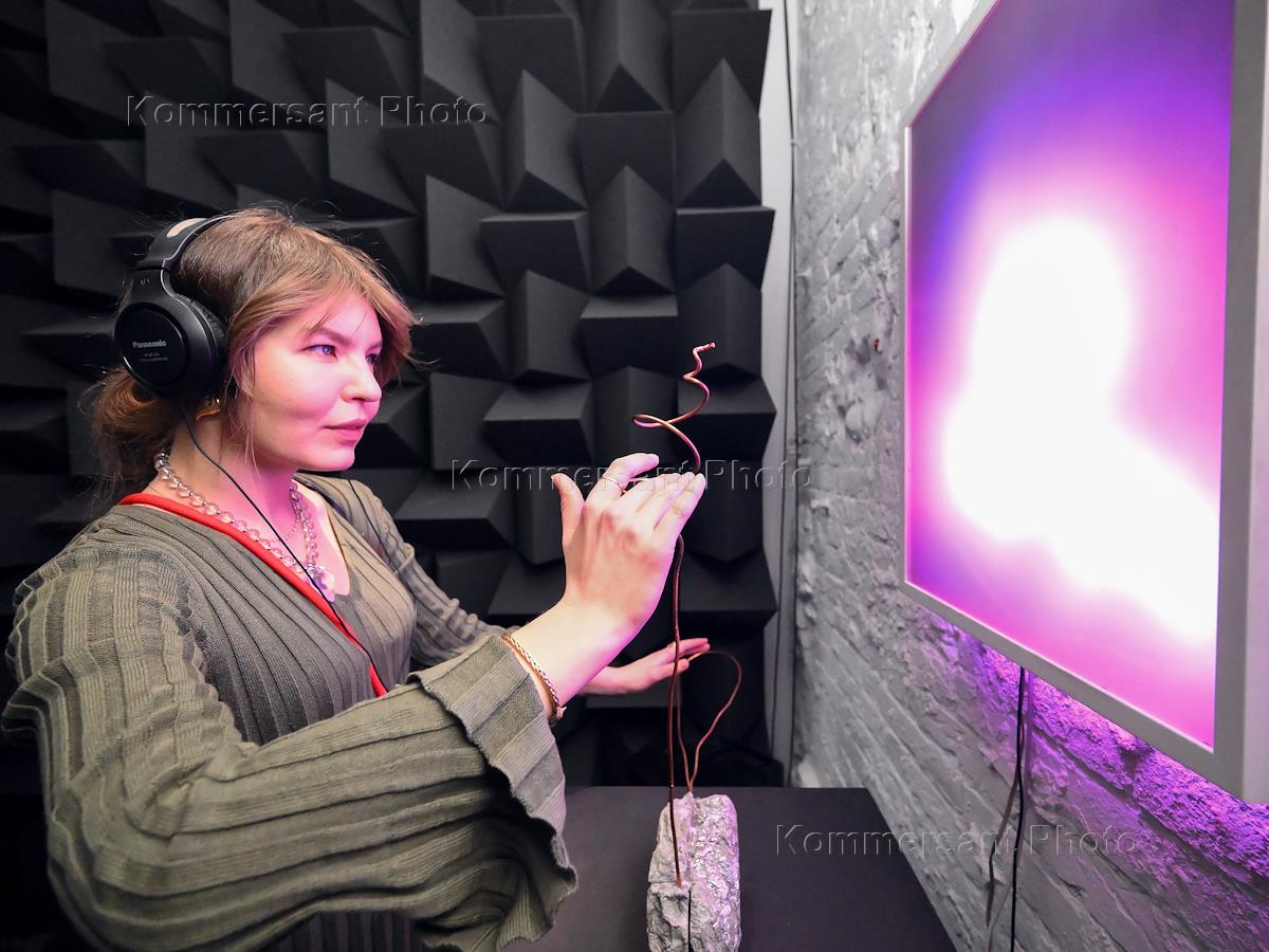 Opening ceremony of the 12th season of Winzavod Open Studios at the Winzavod Center for Contemporary Art. Artist and designer Alina Zolotykh (left) during the ceremony.