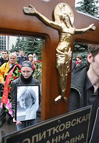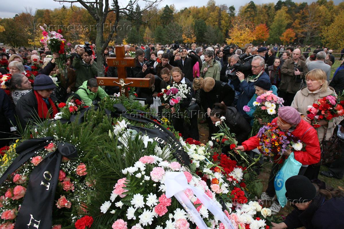 Похороны журналистки, обозревателя "Новой газеты" Анны Политковской, убитой 7 октября 2006 года в подъезде своего дома. Похороны прошли на Троекуровском кладбище.