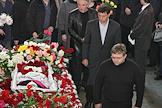 Президент Национальной ассоциации телерадиовещателей Эдуард Сагалаев (слева), советник Президента Украины Борис Немцов (в центре) и председатель политсовета партии "Союз правых сил" (СПС) Никита Белых (справа) во время прощания на похоронах журналистки, обозревателя "Новой газеты" Анны Политковской, убитой 7 октября 2006 года в подъезде своего дома. Похороны прошли на Троекуровском кладбище.