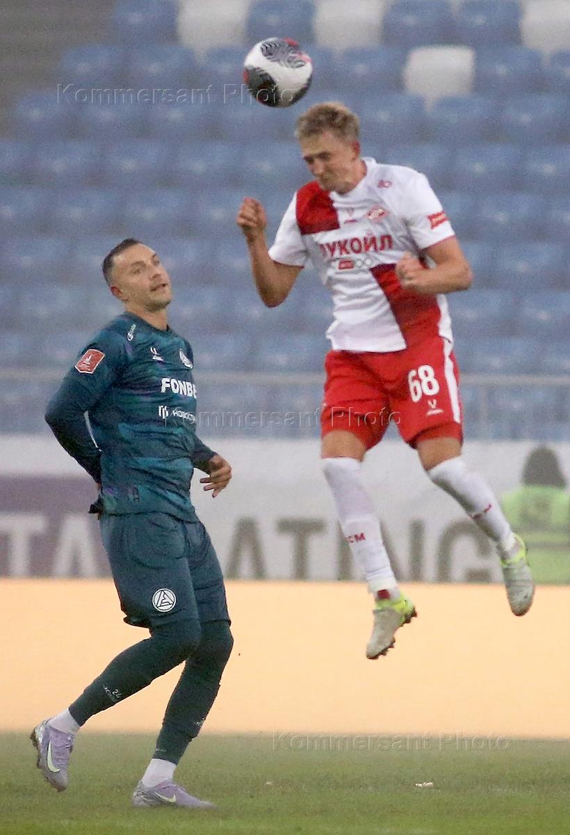 Fonbet - Russian Football Cup 2024/25. 1/4 finals. Match between the teams Akron (Tolyatti) - Spartak (Moscow) at the Solidarity Arena stadium. Akron team player Vladimir Moskvichev (right) during the match.