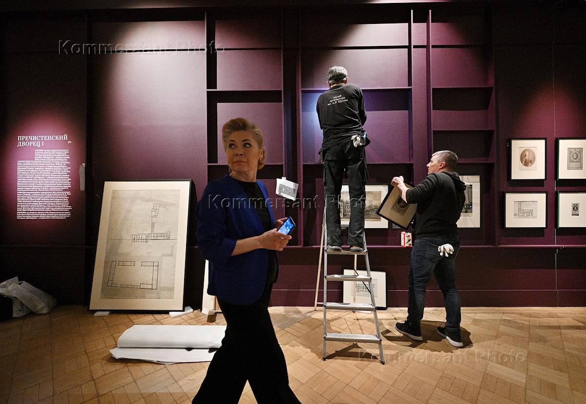 Пресс-показ выставки "1775 год. Триумф Екатерины. Публичное и личное" в Государственном музее архитектуры имени А.В.Щусева. Подготовка выставки.