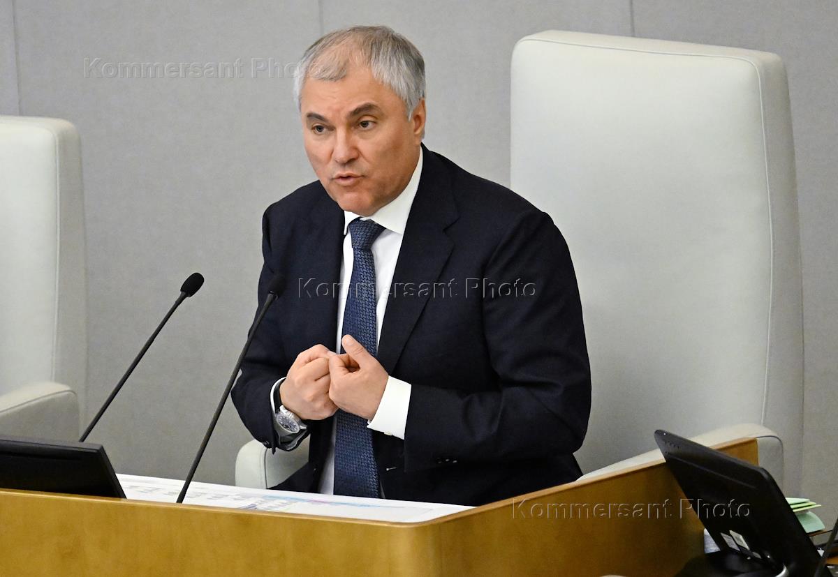Пленарное заседание Государственной Думы (ГД) России. Председатель Государственной Думы России Вячеслав Володин во время заседания.