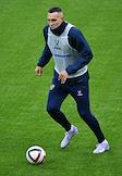 Тренировка сборной России по футболу перед матчем со сборной Гренады на центральном стадионе "Динамо" имени Льва Яшина. Игрок сборной России Артем Дзюба (справа) во время тренировки.