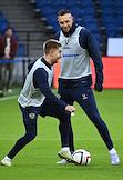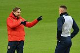Тренировка сборной России по футболу перед матчем со сборной Гренады на центральном стадионе "Динамо" имени Льва Яшина. Игрок сборной России Артем Дзюба (справа) и главный тренер сборной России Валерий Карпин (слева) во время тренировки.