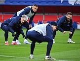 Тренировка сборной России по футболу перед матчем со сборной Гренады на центральном стадионе "Динамо" имени Льва Яшина. Игрок сборной России Артем Дзюба (второй слева) во время тренировки.