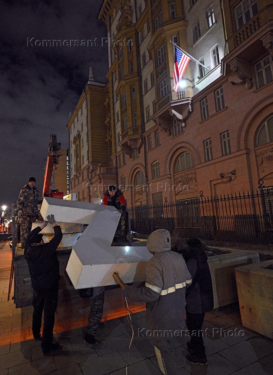 Демонтаж инсталляции в поддержку СВО у здания посольства США.