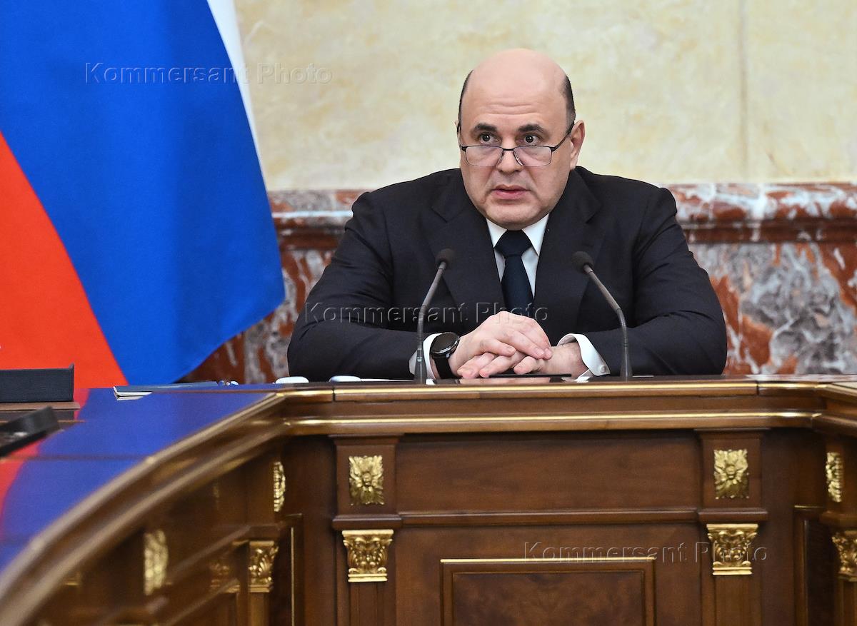 Заседание Правительства России. Председатель Правительства России Михаил Мишустин (в центре) во время заседания.
