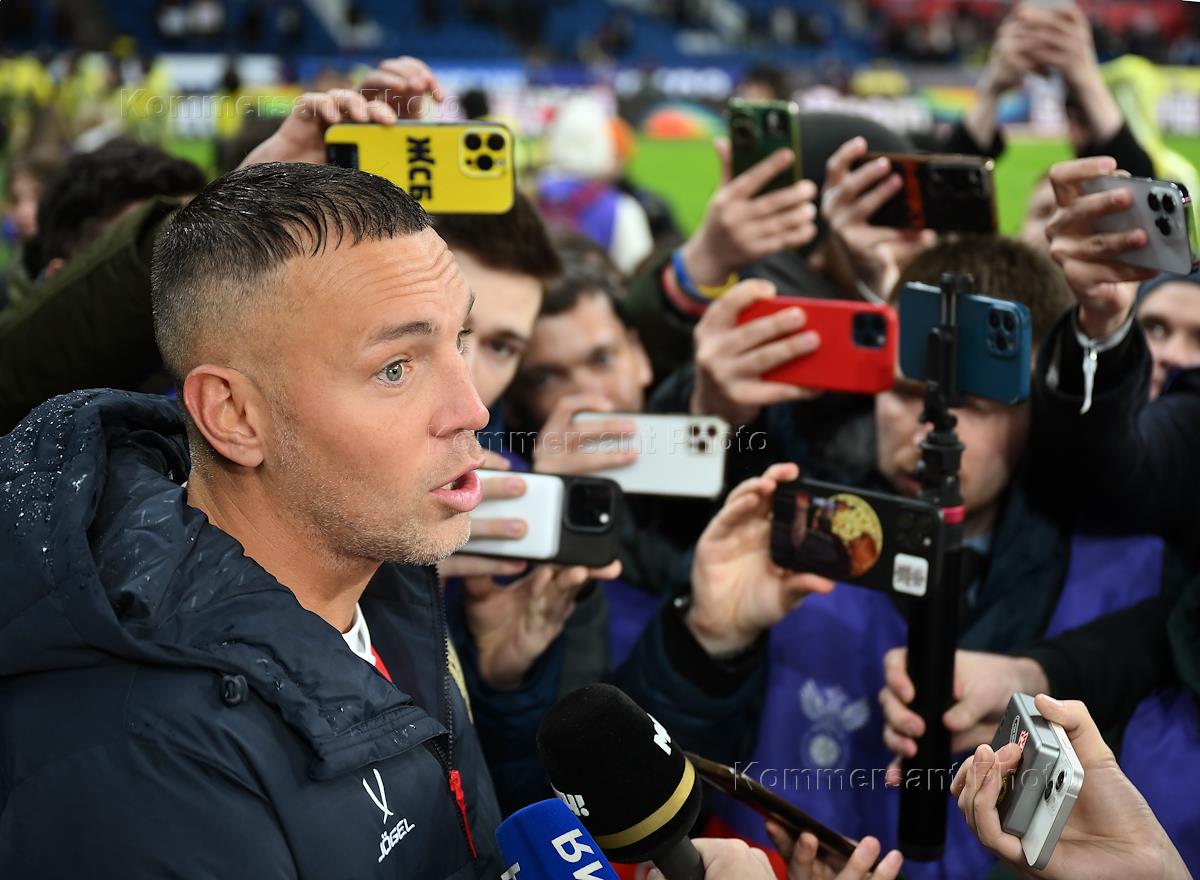 Товарищеский матч по футболу между сборными командами России и Гренады на стадионе "ВТБ Арена - Центральный стадион Динамо имени Льва Яшина". Игрок сборной России Артем Дзюба после матча.