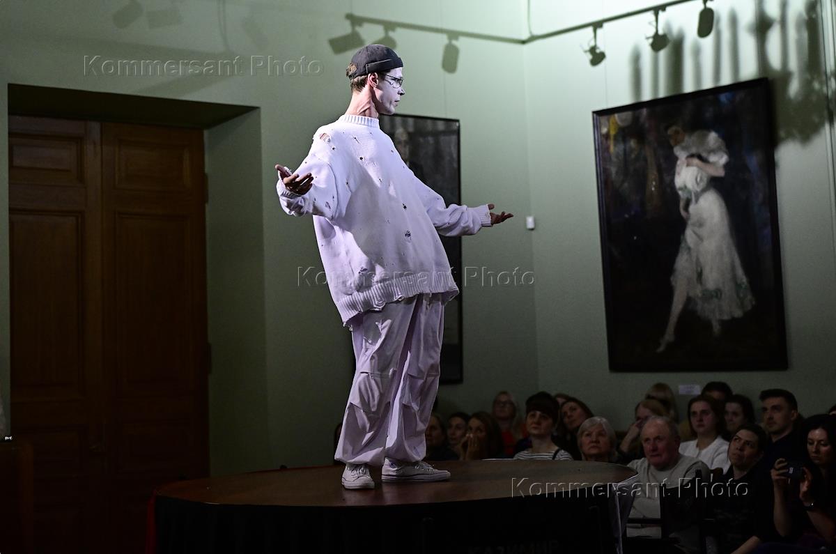 Спектакль "Еще один, Карл" к 150-летию режиссера Всеволода Мейерхольда в Театре Театрального музея. Актер Дмитрий Астапенко во время спектакля.