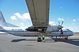 Прибытие первого рейса из Костромы в Международный аэропорт Нижнего Новгорода имени В.П.Чкалова. Сотрудники технических служб аэропорта у самолета.