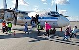 Прибытие первого рейса из Костромы в Международный аэропорт Нижнего Новгорода имени В. П. Чкалова. Пассажиры во время выхода из самолета.