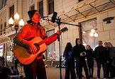 Жанровая фотография. Выступление уличного артиста на улице Арбат.