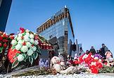 Мемориал в память о жертвах теракта в концертном зале "Крокус сити холл" в первую годовщину со дня трагедии у здания концертного зала.