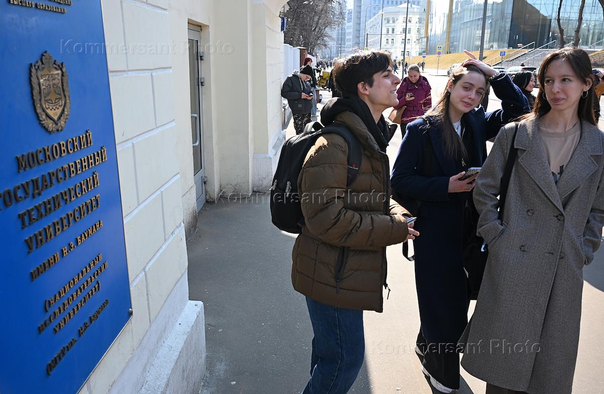 Московский государственный технический университет (МГТУ) имени Н.Э.Баумана. Студенты перед входом в здании МГТУ.