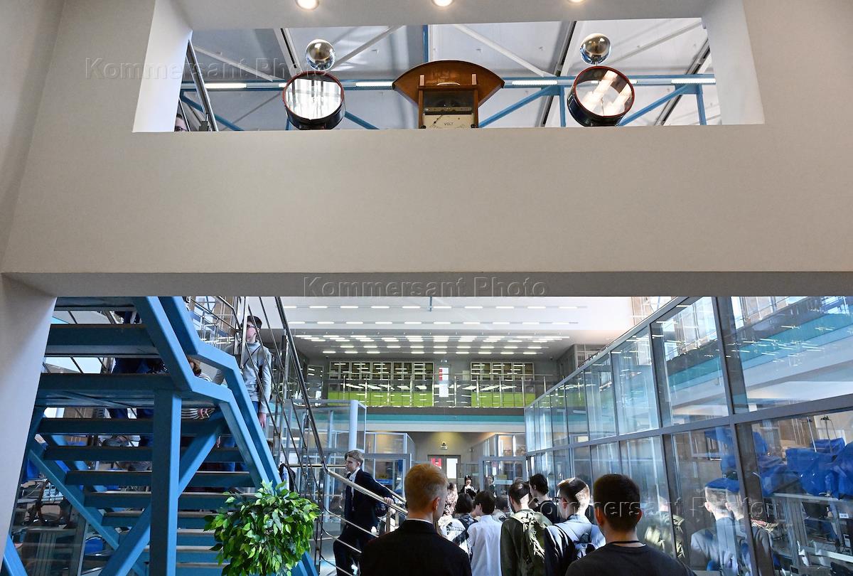 Московский государственный технический университет (МГТУ) имени Н.Э.Баумана. Жанровая фотография. Школьники во время экскурсии в здании МГТУ.