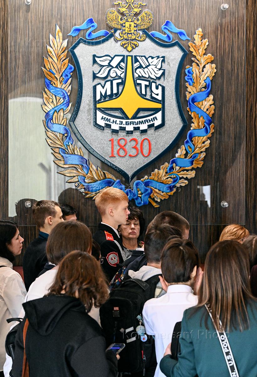 Московский государственный технический университет (МГТУ) имени Н.Э.Баумана. Студенты и школьники с экскурсией в здании МГТУ.