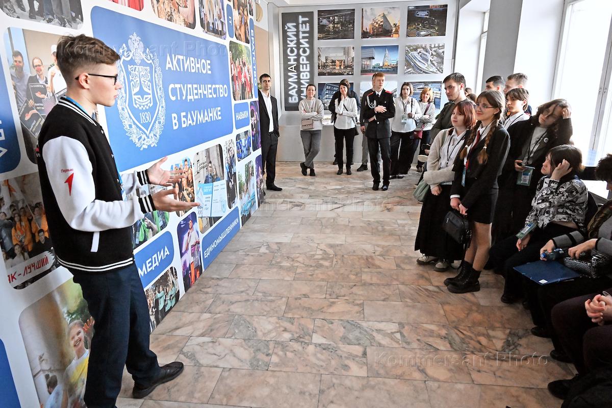 Московский государственный технический университет (МГТУ) имени Н.Э.Баумана. Студенты и школьники с экскурсией в здании МГТУ.