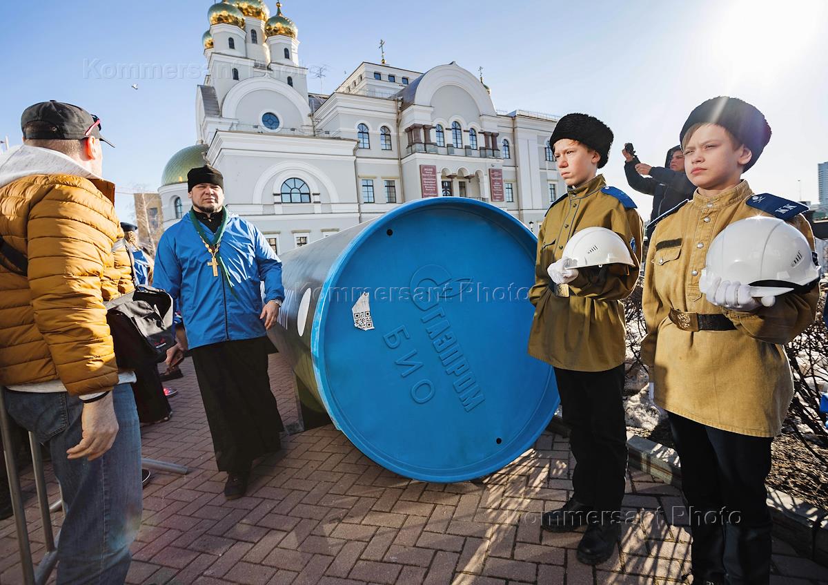 Церемония открытия выставки "За гранью возможного. Операция "Поток", посвященной воинской операции Вооруженных сил России по освобождению Суджи в Курской области, у Храма-памятника на крови во имя Всех Святых в земле Российской просиявших.
