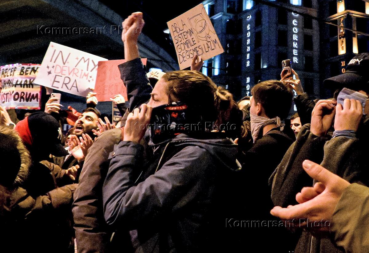 Митинг в поддержку мэра Стамбула Экрема Имамоглу на станции Аксарай в Стамбуле. Жанровая фотография. Люди с плакатами танцуют турецкий танец под звуки барабана.